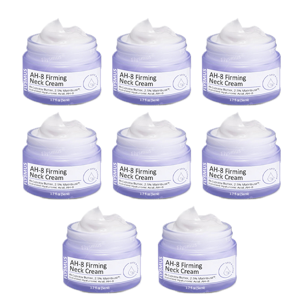 Flysmus® AH-8 Neck Cream do napinania i liftingu szyi wykorzystuje wysokiej jakości składniki, aby maksymalizować skuteczność poprzez zatrzymywanie wilgoci, stymulowanie produkcji kolagenu, wygładzanie zmarszczek oraz naprawianie uszkodzeń.
