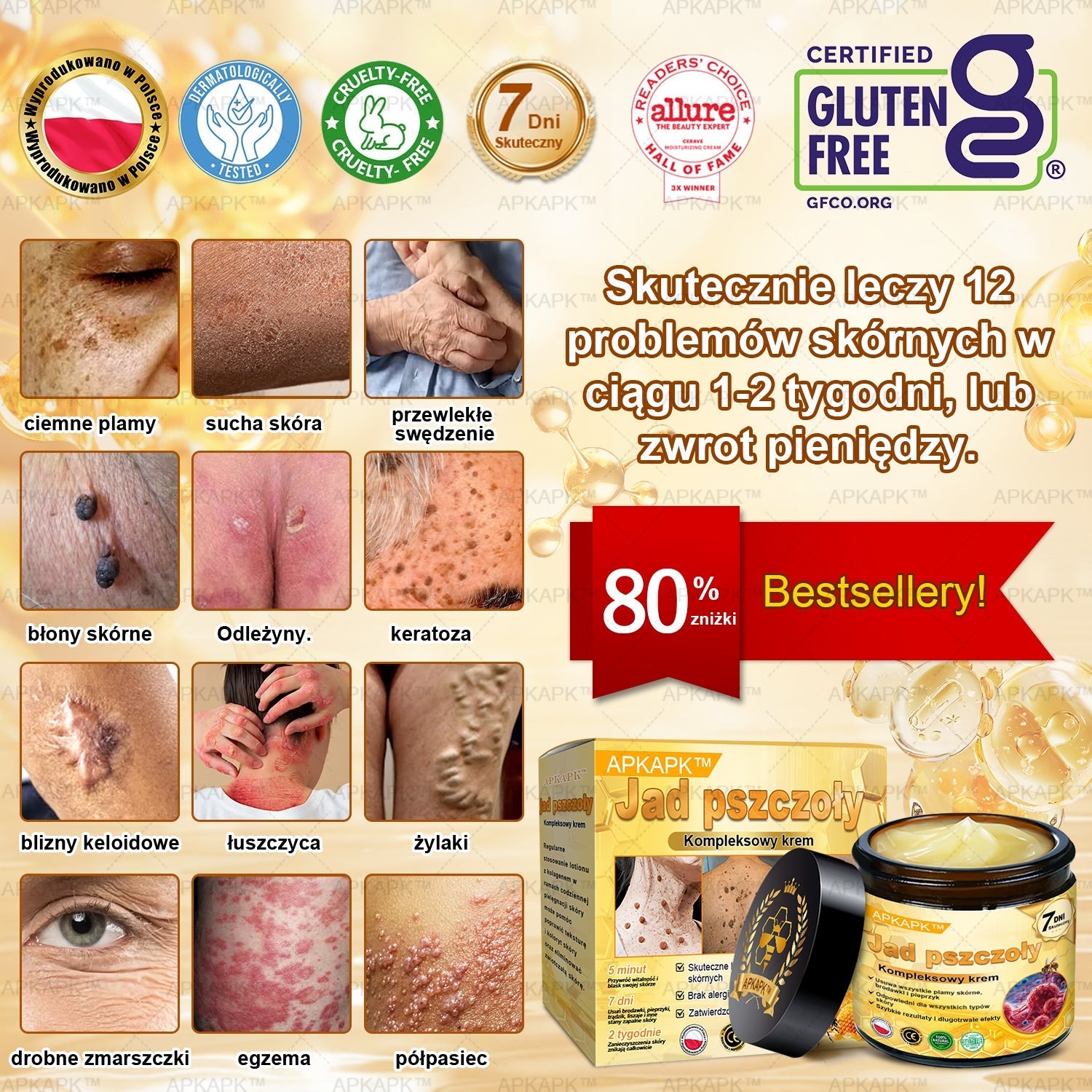 ΑPΚΑPK™ Jad Pszczoły Kompleksowy Krem🥇🥇pomaga w leczeniu problemów skórnych, takich jak: zmarszczki, blizny, plamy pigmentacyjne, rozstępy, trądzik, łuszczyca, egzema, zmiany skórne, podrażnienia, stany zapalne i inne problemy skórne🔥