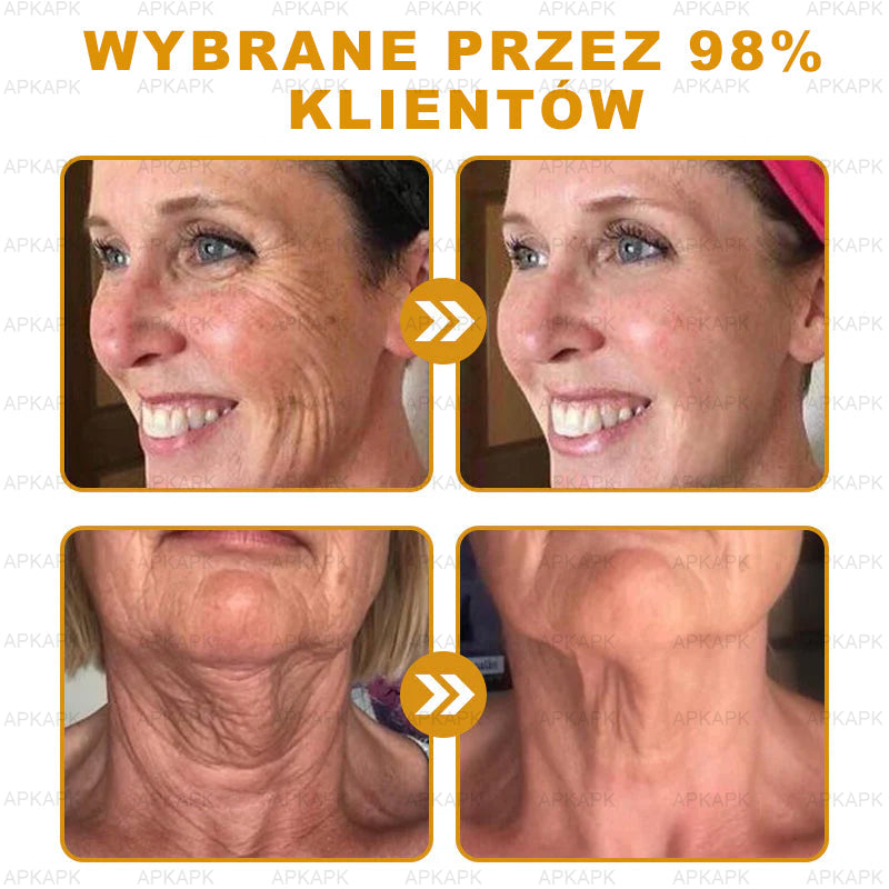 "Po 8 tygodniach moje zmarszczki na czole, zwiotczała skóra na szyi, kurze łapki – a nawet plamy starcze całkowicie zniknęły z mojej twarzy. Próbowałam dziesiątek produktów i zabiegów, ale żaden z nich nie działał lepiej niż TEN!"